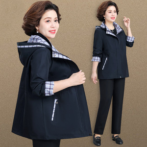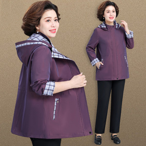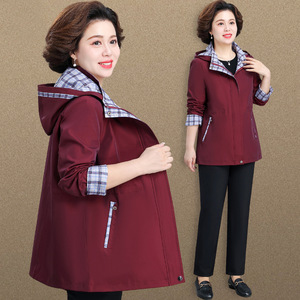 妈妈秋装外套2025新款中老年人女装春秋夹克加肥大码奶奶格子风衣