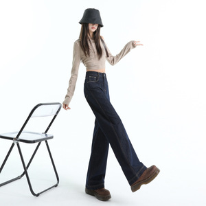 1911布掉色女款秋季窄版阔腿裤高腰垂感显高显瘦显腿长牛仔裤长裤