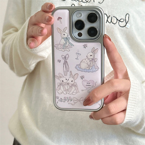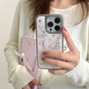 田园风细闪蝴蝶结碎花兔子适用iPhone16苹果15ProMax/14/13手机壳