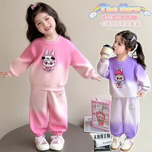 炸街女童labubu套装秋季2025新款儿童卡通卫衣两件套宝宝春秋衣服