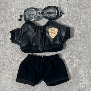 护目镜+盾熊夹克+黑裤子+吉他+鞋+耳机