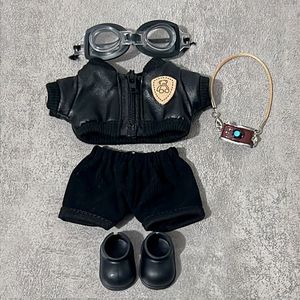 labubu娃衣搪胶公仔17cm一二三代坐坐派对拉布布衣服耳机皮衣套装