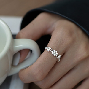 森系花朵交织双层戒指女田园风小清新甜美少女精致百搭可调节指环