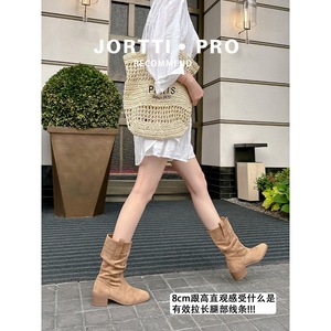 牛皮版~马丁靴女小个子内增高8cm靴子女高跟中筒短靴褶皱堆堆靴