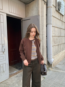 KERNEL COSMOS 深秋织语 设计感拼接提花假两件绵羊毛毛织开衫
