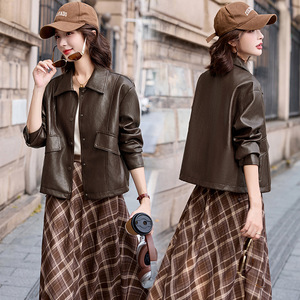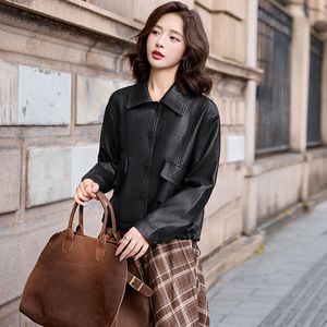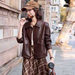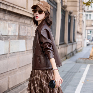 专柜同款秋冬皮衣外套女真皮短款小个子夹克韩版时尚修身上衣批发