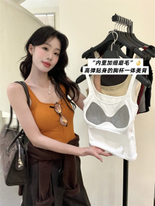 正品 内里细磨毛高弹力贴身一体杯美背背心2025秋冬新品打底吊带
