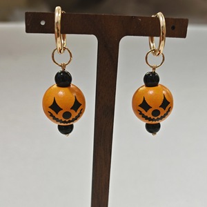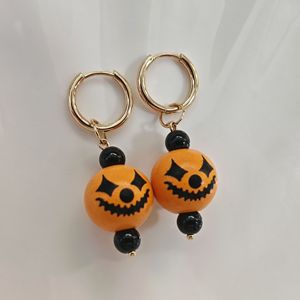 欧美跨境饰品 万圣节个性创意南瓜木珠吊坠耳环 嘻哈可爱搞怪耳饰