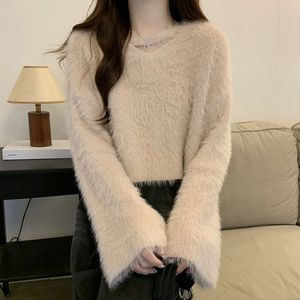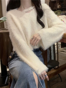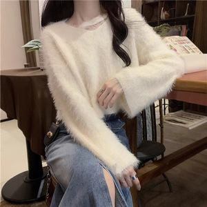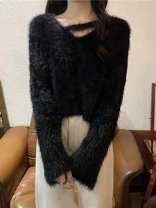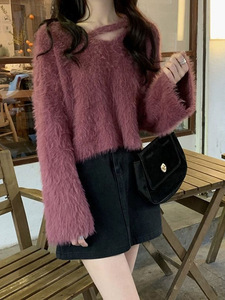仿水貂毛软糯短款毛衣女秋冬季爆款宽松百搭chic温柔风针织衫上衣
