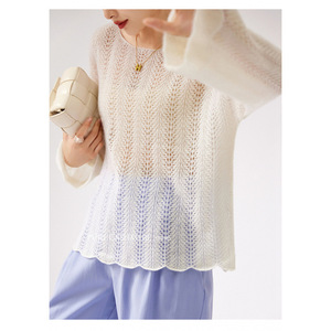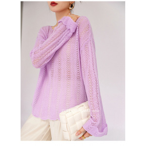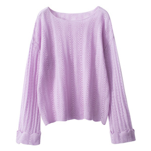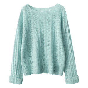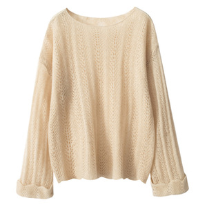 羊绒衫女纯羊绒内搭打底一字领镂空毛衣秋冬新款宽松慵懒风长袖衫