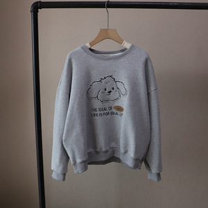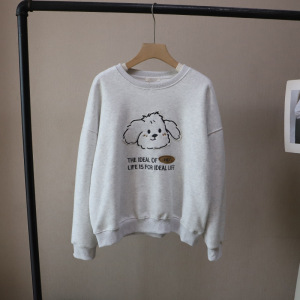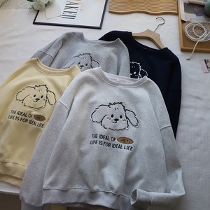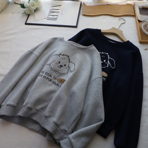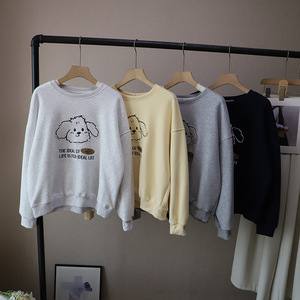 [比正]2025秋冬新款韩版卡通字母刺绣圆领套头宽松百搭卫衣女5001