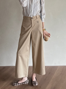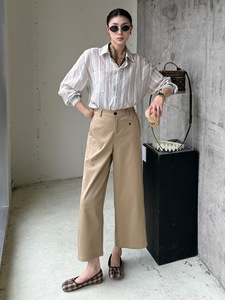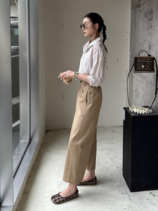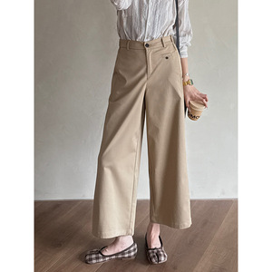 云长 天丝棉卡其直筒阔腿工装裤女小个子显瘦高腰九分长裤 K0089