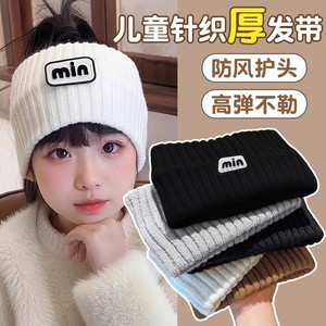 儿童毛线针织发带女童日常外戴宽边防风护额保暖束发带不勒头头饰