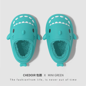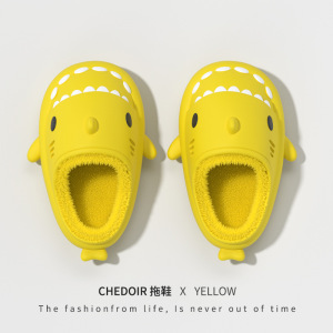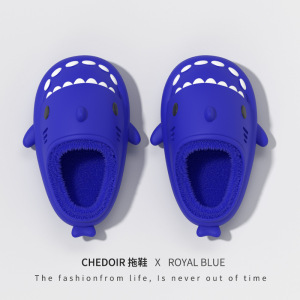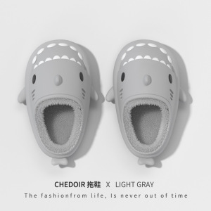 防水鲨鱼棉拖鞋秋冬季居家户外卡通亲子保暖可爱防滑男女宝棉拖鞋