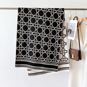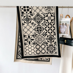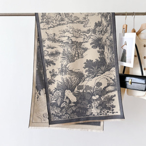秋冬季风景画双面围巾女高级感披肩两用仿羊绒加厚保暖围脖大披肩