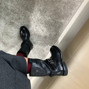 现货~新款欧美英伦风帅气骑士靴女皮带扣百搭中筒时装靴马丁靴