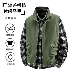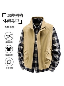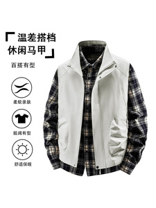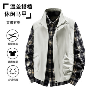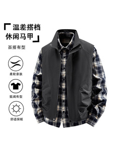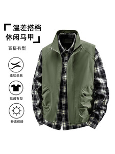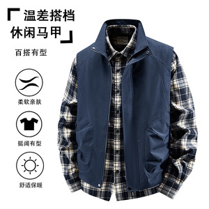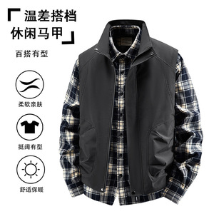 跨境款马甲户外春秋季软壳马甲男士立领开衫防风防水透气工装马甲