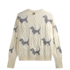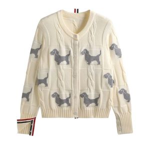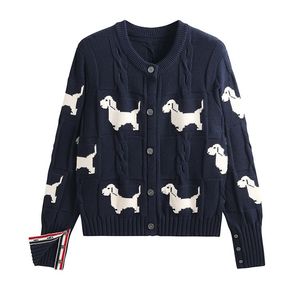 百搭设计感狗狗图案设计感麻花慵懒风圆领针织开衫女上衣短款外套