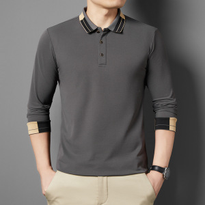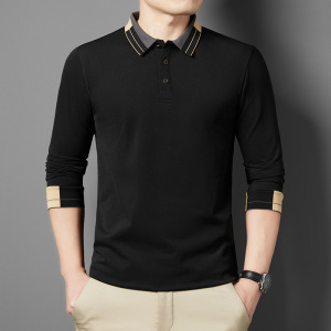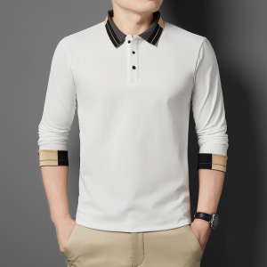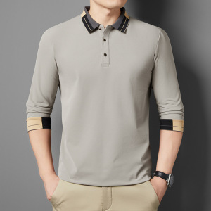 仿棉高弹长袖POLO直播及跨境已爆2025秋季新款简约休闲男士t恤