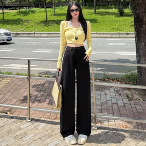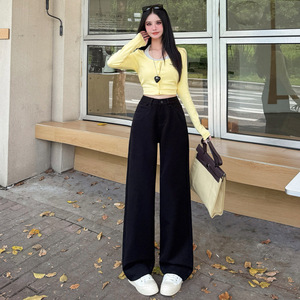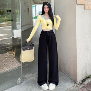 四面弹垂坠感阔腿牛仔裤女秋季新款高腰宽松抗皱小个子显瘦拖地裤