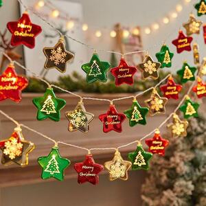 led圣诞老人装饰灯圣诞树灯串发光电镀五角星电池拍照氛围布置灯