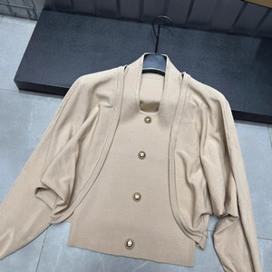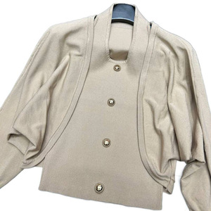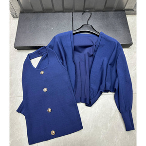 2025年秋季新款巴家针织无袖单排扣挂脖背心+长袖开衫女两件套装