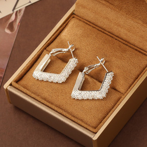 新款法式菱形锆石耳扣轻奢高级感S925银针耳环小众设计精致耳饰女