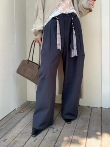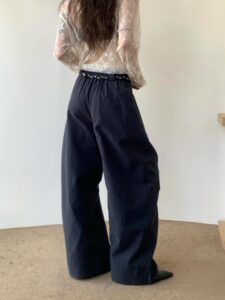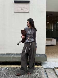 2025秋冬新款高腰抽褶工装阔腿裤女式休闲百搭拖地裤休闲裤95599