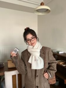 韩系安可拉红~纯色围巾女 冬季氛围感新年红色针织毛线高级感围脖