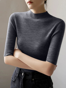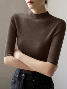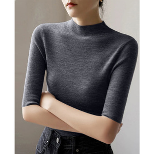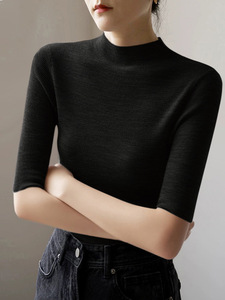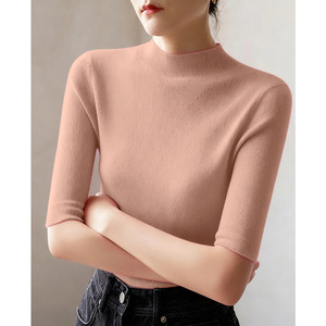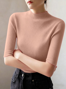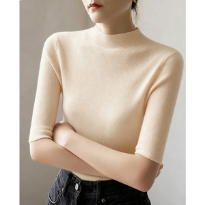 半高领新款时尚套头百搭打底女装高级感秋季五分袖修身上衣针织衫