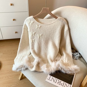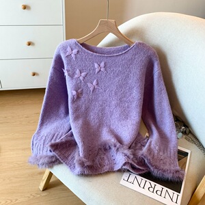 广州十三行高货爆款~立体花朵喇叭袖毛衣女秋冬软糯水貂绒针织衫