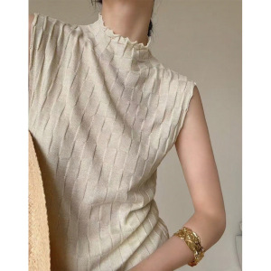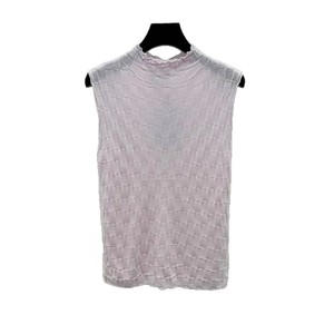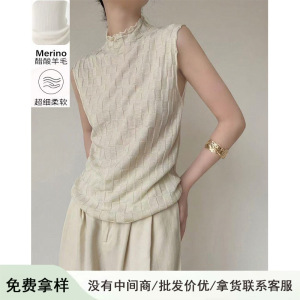 菱格方块肌理醋酸羊毛半高领无袖背心薄款内搭上衣百搭打底针织衫