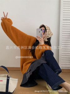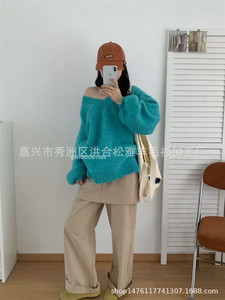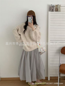 韩系宽松慵懒v领套头毛衣女秋冬新款纯色百搭大码针织衫软糯上衣