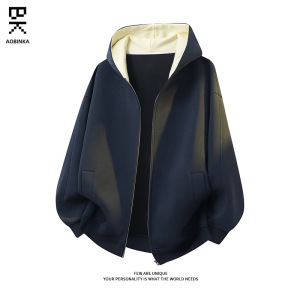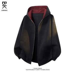 美式新款撞色连帽卫衣男秋季潮牌美式高街宽松休闲情侣款上衣外套