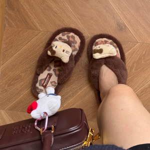 三丽鸥毛绒人字拖女冬天室内居家卡通拖鞋冬天加绒保暖家居棉拖鞋