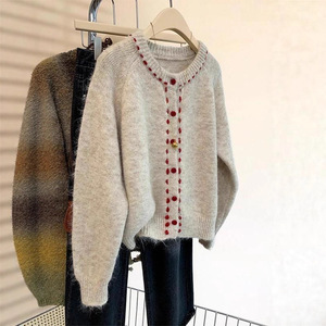 杏色软糯加厚圆领毛衣外套女2025秋冬新款设计感慵懒针织开衫上衣