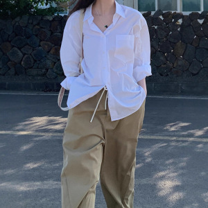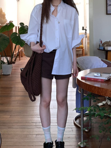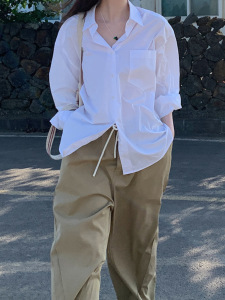韩系显瘦温柔舒适精梳进口纱极简纯棉白衬衫通勤宽松长袖气质衬衣