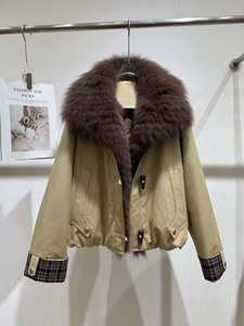 2025冬新海宁时尚款鹅绒内胆皮草外套女气质百搭短款派克羽绒外套