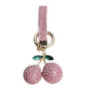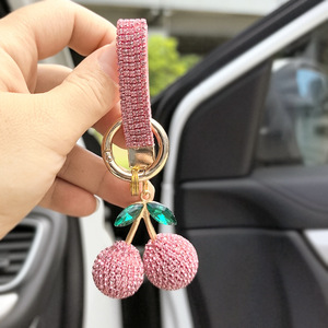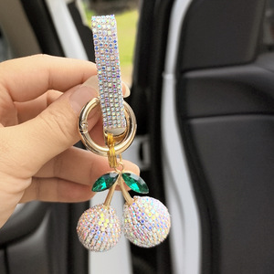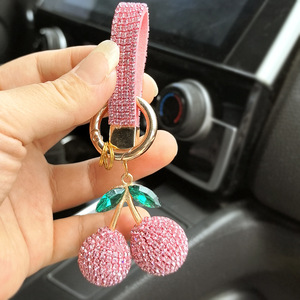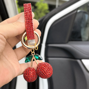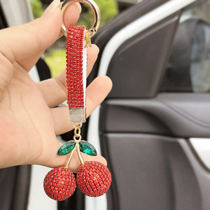 厂家批发镶钻樱桃钥匙扣镶钻可爱个性包包挂件汽车钥匙链彩色配件
