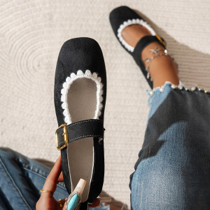 复古绒面浅口单鞋女一件代发2025年秋季新款纯色百搭休闲玛丽珍鞋