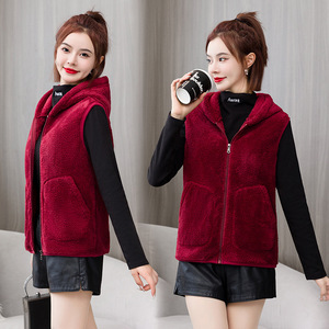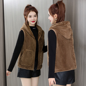工厂批发新款女式马甲秋冬小马夹洋气连帽百搭休闲珊瑚绒背心坎肩
