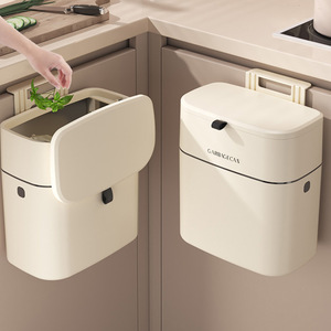 家用塑料翻盖挂壁垃圾桶厨房浴室卫生间夹缝挂壁收纳压圈 垃圾桶