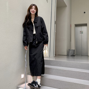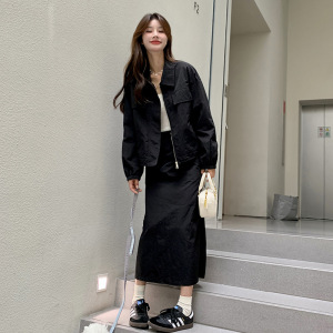 实拍又a又飒夹克套装女春秋2025超火酷盐系ootd高级工装裙两件套