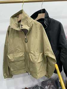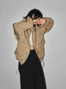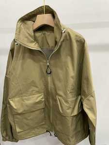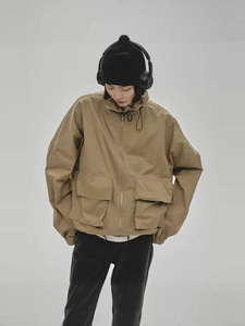 日本贵牌小众设计感复古短款宽松立领工装抽绳夹克风衣外套