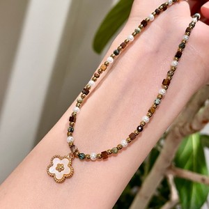 花朵吊坠天然石串珠项链