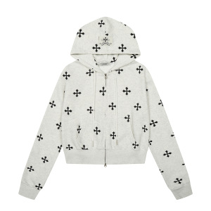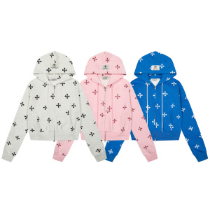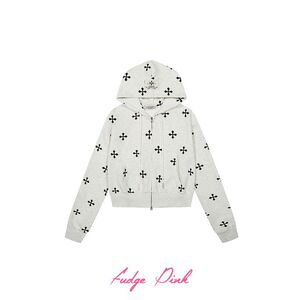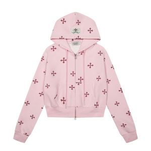Fudge Pink 25秋季New甜美少女个性图案满印连帽卫衣开衫