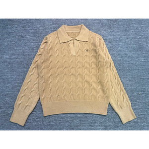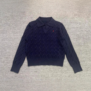 25年秋季新款Polo拉夫小马麻花针织翻领长袖套头宽松百搭女毛衣