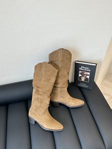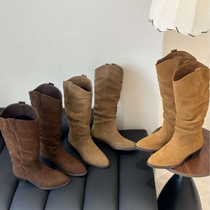 滨莉25秋季法式复古咖色网红高级堆堆靴新款西部牛仔高筒靴女靴子