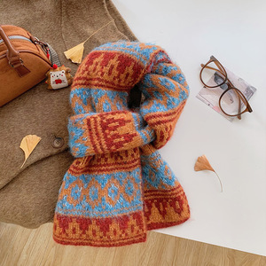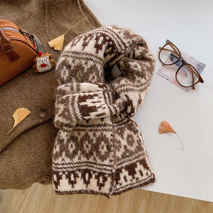 费尔岛针织围巾女冬季高级感韩系氛围感复古加厚保暖毛线围脖批发
