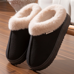 新款毛绒棉拖鞋女冬室内家居保暖加绒防滑包跟外穿厚底拖鞋男秋冬